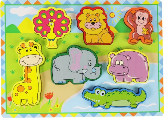 Odkrijte čar učenja in zabave z našo leseno vstavljanko s safari živalmi. Ta interaktivni 3D puzzle je zasnovan tako, da pomaga najmlajšim razvijati koordinacijo rok in oči.