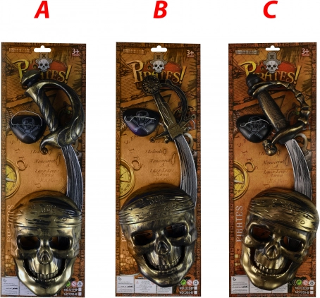 - Popoln komplet – maska, preveza za oko in meč v usklajenem piratskem slogu.