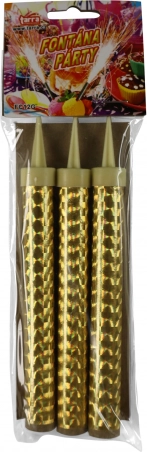 Stilska pirotehnična dekoracija za rojstne dni, silvestrovanje in vrtne zabave. Vsaka fontana ustvari učinek zlatih isker, ki vašemu dogodku doda slovesno vzdušje. Praktično pakiranje po 3 kose zagotavlja dovolj učinka za več trenutkov.