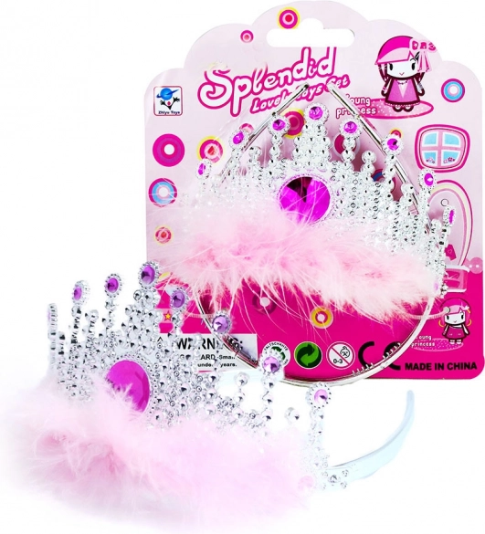 Eleganten krona za vse majhne princese, okrašena z nežnimi rožnatimi elementi in peresi. Odlična dodatna oprema za kostum, ki bo očarala vsako malo damo.