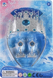 Čudovita krona za male princese, navdihnjena z Združbo Zimskega kraljestva, je popoln dodatek k vsakemu kostumu. Set vključuje krono in uhane, okrašene z modrimi elementi za čaroben videz.