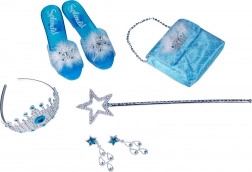 Spremenite svojo hčerko v princeso Zimskega kraljestva s tem čudovitim kompletom! Vsebuje vse, kar mala princesa potrebuje: čeveljčke, torbico, naglavni trak, krono, uhane in palico.