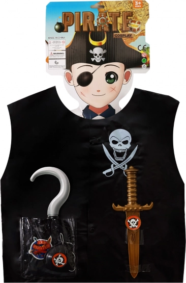 Piratski karnevalski telovnik za otroke je idealen dodatek za vse male pustolovce! Vsebuje plastičen nož, kljuko in plašč, ki bodo razveselili vsakega malega pirata.