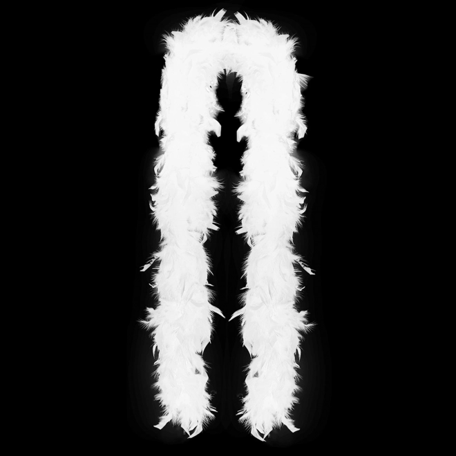 Dodajte svojemu videzu kanček glamurozne elegance. Ta bela pernata boa je lahka, prijetna na dotik in jo je preprosto kombinirati z večernimi oblekami ter karnevalskimi kostumi. Zaradi dolžine približno 180 cm je udobna za nošenje čez ramena in okoli vratu.