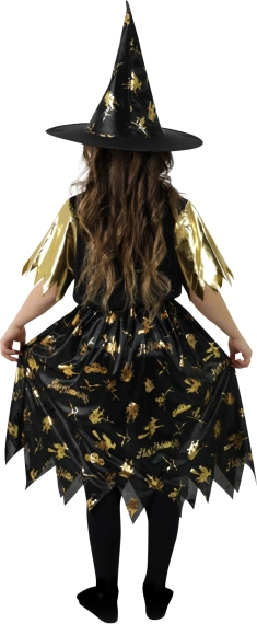 Elegantna kombinacija črne in zlata s sijočimi motivi poskrbi, da bo mala čarovnica izstopala na vsakem dogodku.