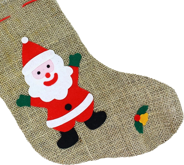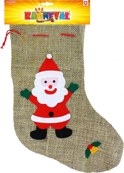 Tradicionalna miklavževa nogavica iz jutovine s praktično zanko in dekorativnim potiskom. V prostorno nogavico gre veliko dobrot in drobnih daril. Idealna za Miklavža in božič, varna za otroke od 3 let, velikost 38 cm.