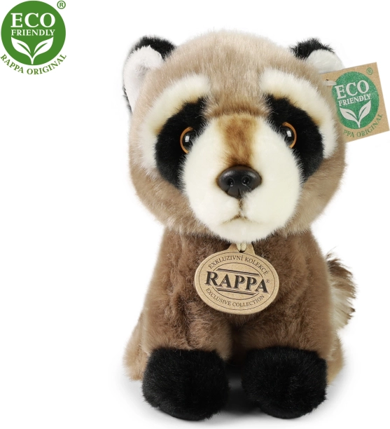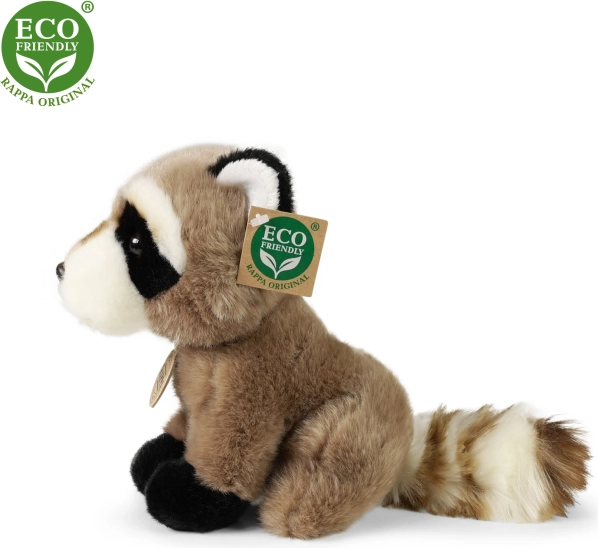 Lep plišasti rakun velikosti 18 cm, izdelan iz visoko kakovostnega pliša. Ta izdelek je del ekskluzivne kolekcije okolju prijaznih plišastih igrač. Ekološko polnilo iz recikliranih PET plastenk zagotavlja okolju prijaznost.