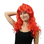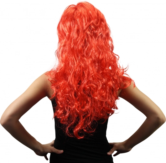 Nepogrešljiva lasulja z dolgimi valovitimi lasmi in frufrujem v intenzivno rdeči barvi doda vsaki preobleki izrazit slog. Idealna za karneval, zabave in cosplay, ponuja udobno nošenje in enostavno vzdrževanje zahvaljujoč kakovostnim sintetičnim vlaknom.