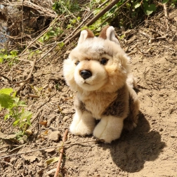 Nežni dlačice, izrazite oči in verno barvanje zagotavljajo vtis pravega volčjega mladiča.