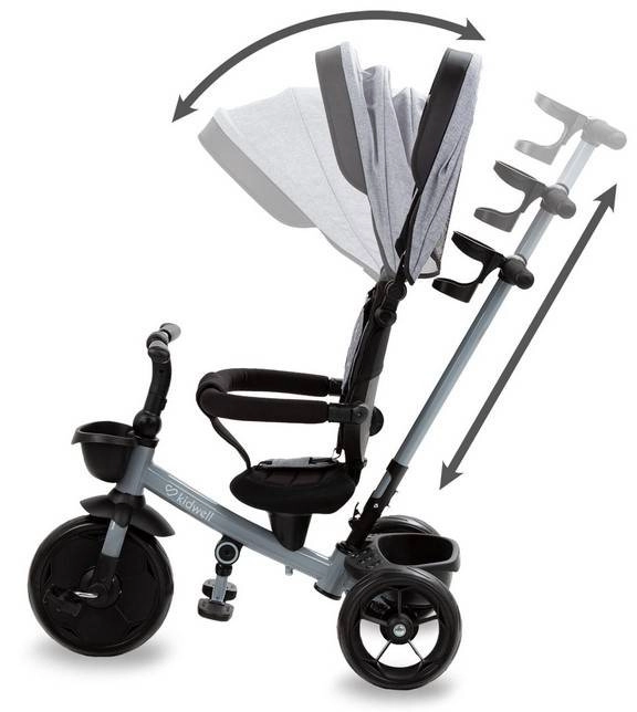 Lahek in vzdržljiv tricikel Kidwell Axel v elegantni barvi Titanium Grey otrokom od 18 mesecev zagotavlja varno zabavo pri vsakodnevnih vožnjah. S težo 7,7 kg se zlahka upravlja in prenaša, hkrati pa je stabilen in udoben. Varen tricikel za najmlajše z čvrsto konstrukcijo, udobnim sedenjem in nosilnostjo do 25 kg je idealen za igro na prostem in razvoj motorike.