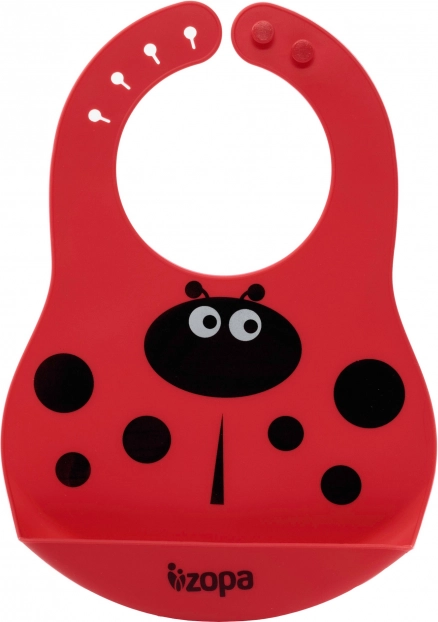 Eleganten silikonski slinček z motivom pikapolonice je idealna zaščita za oblačila vašega otroka med hranjenjem, opremljen s praktičnim žepkom za padajočo hrano.