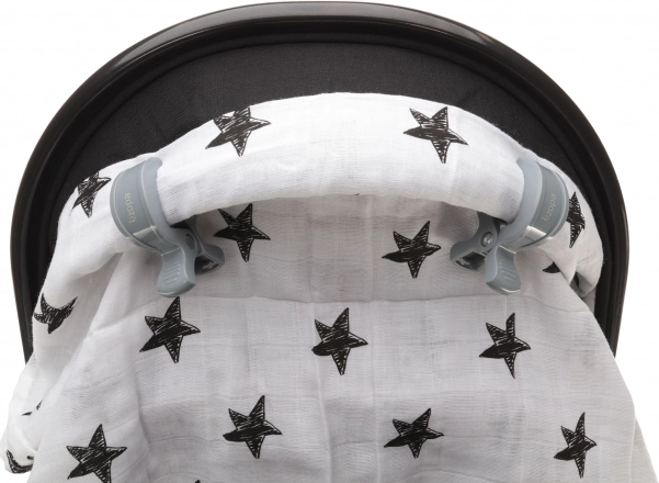 Praktična sponka za voziček ali avtosedež, s katero lahko hitro, enostavno in trdno pritrdite plenico ali brisačo, ki ščiti otroka pred soncem ali vremenskimi vplivi. S pomočjo sponke lahko pritrdite tudi dudo ali igrače in tako preprečite njihovo izgubo. Sponka je izdelana iz zelo kakovostne plastike, ki ne vsebuje BPA.
