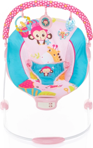 Otroški ležalnik Happy Safari Pink bo razveselil otroke s svojim pisanim dizajnom in funkcijami, ki prispevajo k njihovi stimulaciji in sprostitvi. Ležalnik je namenjen otrokom od rojstva do 9 kg in ponuja širok nabor funkcij za pomiritev in zabavo.
