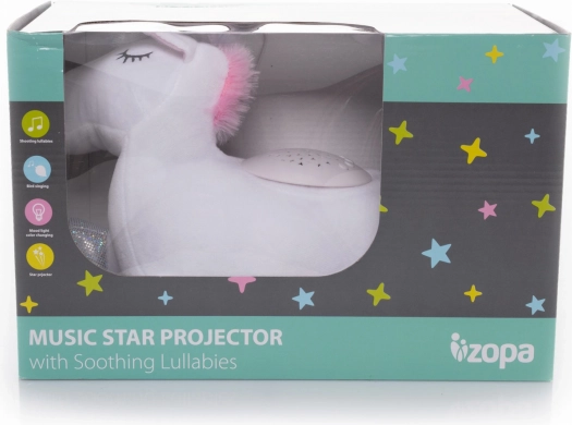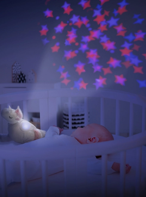 Plišasti samorog s projektorjem spremeni otroško sobo v čarobni prostor z zvezdami, ki spreminjajo barve. S projektorjem temen strop postane pravljično zvezdnato nebo, ki pomirja in razveseljuje. Je idealen spremljevalec za miren spanec in dnevno zabavo.