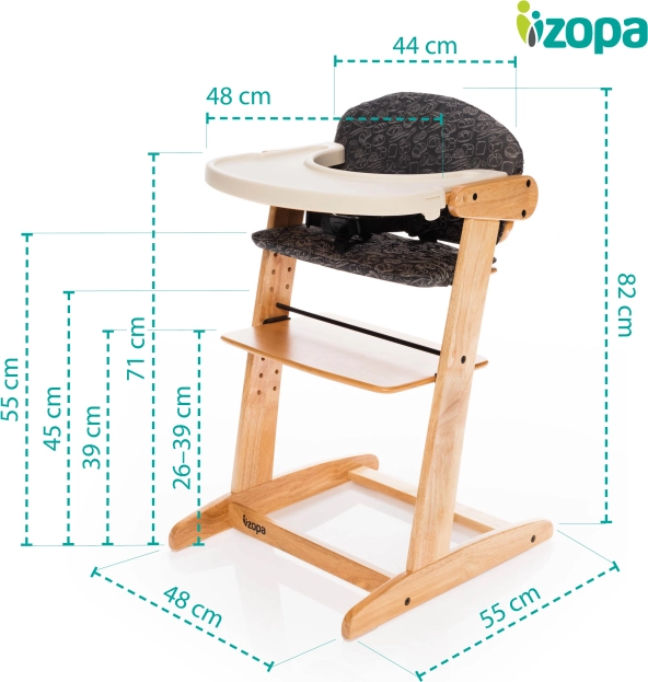 Stolček Zopa Grow Up je izdelan iz trdnega in prožnega lesa, kar zagotavlja dolgo življenjsko dobo in varno uporabo. Izpolnjuje mednarodne varnostne standarde in ponuja prilagodljivost pri rasti otroka zahvaljujoč enostavno nastavljivim komponentam.
