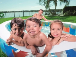 Uživajte v poletju s prostornim napihljivim bazenom 229 × 152 × 51 cm, ki se prilega večini vrtov in teras. Prosojne stene z barvnimi paneli delujejo igrivo, hkrati pa imate dober pregled nad otroki med igro v vodi.