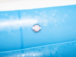 Trpežen PVC (debelina 0,27 mm) prenese vsakodnevno igro otrok, medtem ko varnostni ventil preprečuje nenameren izpust zraka. Po kopanju vodo zlahka izpustite skozi spodnji izpustni ventil in bazen v hipu zložite ter pospravite. Priložen je tudi obliž za popravilo za primer manjših poškodb.