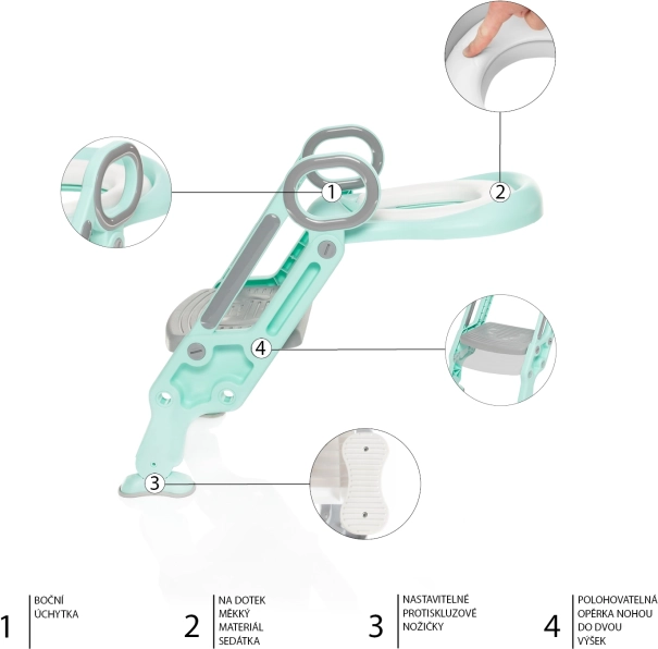 Otroški nočni kahlica ECOTOYS roza-zeleni z nedrsečimi nogami