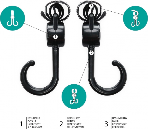 Klasičen dvojni kavelj za voziček – 2 kosa