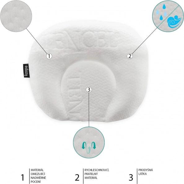 Podporni vzglavnik za dojenčke iz spominske pene Tencel, bel