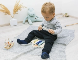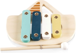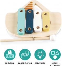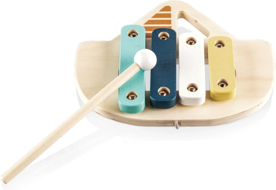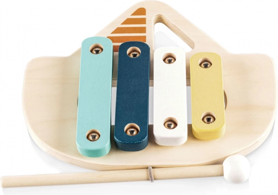 Ksilofon je izdelan iz naravnega lesa in barv na vodni osnovi, kar zagotavlja varnost za otroke in skrb za okolje. S to igračo se otroci naučijo prepoznavati prve tone in melodije, kar je odličen pripomoček za razvoj njihovega občutka za ritem.