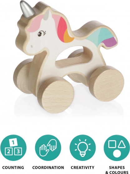 Lahek in kompakten samorog za vožnjo je odlična izbira za majhne otroške roke. Zaradi svoje konstrukcije in velikih, vzdržljivih koles je primeren za vožnjo po preprogi, lesenih tleh ali otroškem igrišču. Samorog pomaga razvijati motoriko, koordinacijo in ustvarjalnost otroka. Poleg tega spodbuja otroke, ki raje sedijo med igro, k gibanju. Samorog prav tako očara s svojim prisrčnim dizajnom in pisanimi detajli grive in repa.