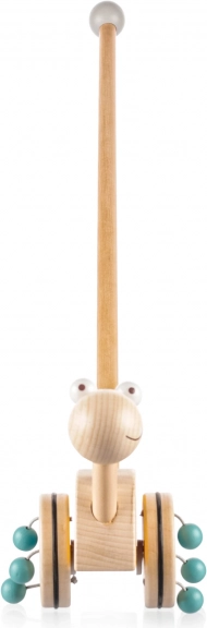 Trdna palica zagotavlja oporo pri prvih korakih, z leseno kroglico na koncu za večjo varnost. Jezdec je izdelan iz trpežnega lesa brez ostrih robov, kar zagotavlja dolgo življenjsko dobo in varno igro.