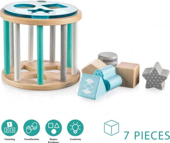Lesena aktivna vstavljanka otrokom ponuja interaktiven način učenja prepoznavanja oblik in barv. Igrača je izdelana iz kakovostnega naravnega lesa in uporablja barve na vodni osnovi, kar zagotavlja varnost za otroke. Vstavljanka je sestavljena iz valja z več odprtinami, v katere se vstavljajo kocke različnih oblik in barv.