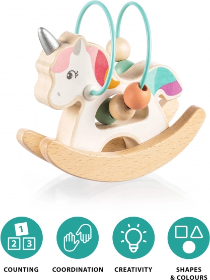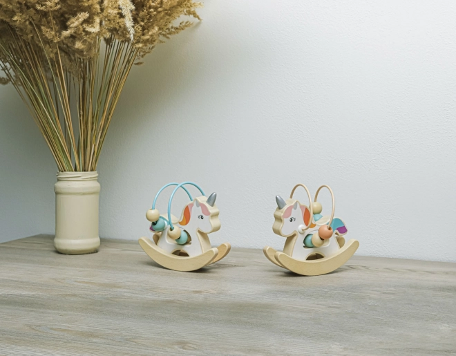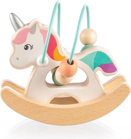 Interaktivna lesena igrača s samorogom, ki bo otroka zabavala dolge ure.