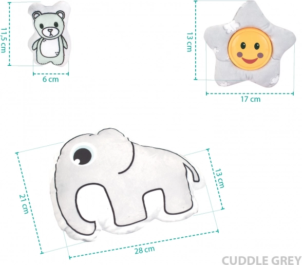 Ta stilska igralna podloga Comfort Cuddle Grey je idealen prvi igralni kotiček za vašega dojenčka. Mehka in prijetna površina nudi udobje pri ležanju na hrbtu ali trebuščku, medtem ko viseče igrače na lokih spodbujajo otroka k stezanju in prijemanju. Zaradi antialergenega materiala je podloga nežna do občutljive otroške kože.