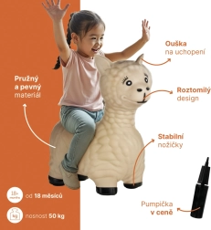 Veselo napihljivo hopsadlo Skippy v obliki živalce otrokom prinaša veselje do gibanja in podpira zdrav razvoj. Zahvaljujoč ergonomski obliki z ušesi za varno držanje je skakanje udobno doma in na vrtu. Del pakiranja je praktična pumpica, zato hopsadlo zlahka napihnete in izpustite zrak. Brez ftalatov, primerno od 18 mesecev, nosilnost do 50 kg.