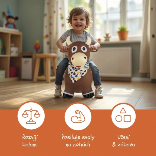 Hopsadlo Skippy je idealna igrača za aktivne malčke. Pisčen in prikupen videz otroke takoj pritegne in jih motivira k naravnemu gibanju. Redno skakanje na hopsadlu na zabaven način razvija grobo motoriko, ravnotežje in koordinacijo celega telesa.