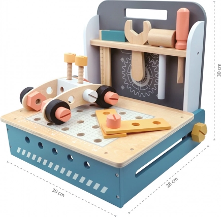 lesenih komponent, od lesenih ploščic z luknjami do vijakov in