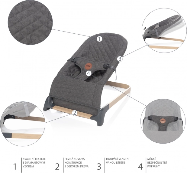 Zaradi čvrste in hkrati prožne kovinske konstrukcije ležalnik omogoča zibanje na osnovi otrokove lastne teže ali pa lahko otroka zazibljejo starši. Zibanje je tako povsem naravno. Dojenček se hitro nauči, kako se v ležalniku zazibati, s čimer razvija motorične spretnosti in ravnotežje.