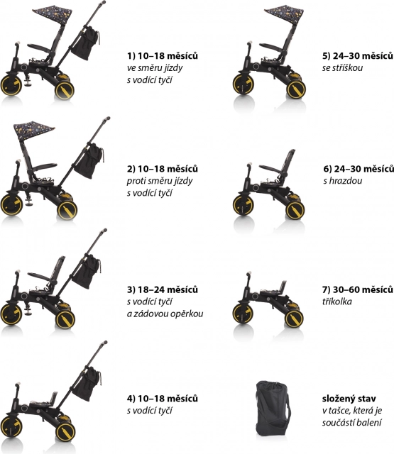 Otroški tricikel 3v1 z vrtljivim sedežem in strehico TINY BIKE – Vrtljiv