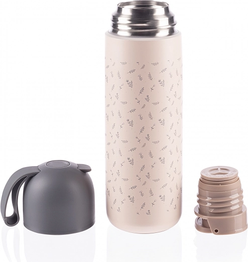 Kakovostna termovka za pijače s prostornino 400 ml ohranja vroče napitke do 12 ur in hladne do 24 ur. Izdelana je iz kakovostnega nerjavečega jekla, odpornega proti koroziji. Tesen pokrov zagotavlja, da termovka ne pušča, zgornji zamašek za udobno nalivanje pa poskrbi, da se ne polijete niti med vožnjo po neravni cesti; prav tako ste lahko prepričani, da se otrok zaradi dvojnega zapiranja ne bo polil z vročo tekočino iz termovke. Pokrov termovke lahko uporabite kot skodelico.