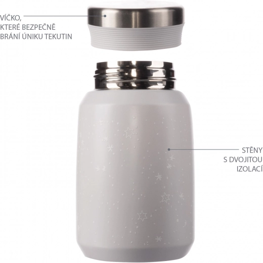 Kakovostna termovka za hrano in kašice s prostornino 500 ml ohranja vročo hrano do 12 ur, hladno pa do 24 ur. Izdelana je iz kakovostnega nerjavečega jekla, ki je odporno proti koroziji. Tesen pokrov zagotavlja, da termovka ne pušča. Zahvaljujoč vakuumski izolaciji se termovka pri polnjenju z vročo vsebino od zunaj ne segreje.
