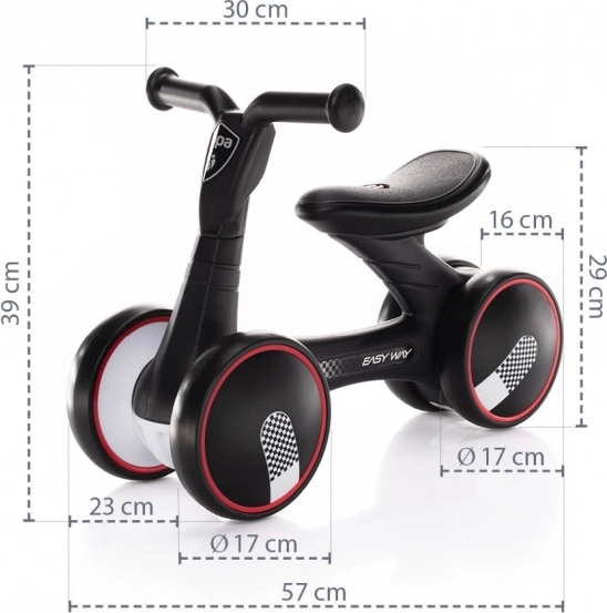 Poganjalec Easyway je novost za zabavo vaših otrok od 18 mesecev dalje. Športna zasnova temelji na robustni konstrukciji s trdnim okvirjem. Samoumevna so tudi kolesca s tehnologijo »silent wheels« za tiho in nemotečo vožnjo. Izbirate lahko med več barvnimi izvedbami.
