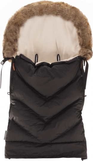 Topla zimska vreča s stilskim dizajnom, primerna za globok in športni voziček. Vreča ščiti otroka pred hladnim vremenom, dežjem in ostrim vetrom zahvaljujoč zunanjemu materialu, ki je odporen na veter in vodo, ter dodatno topli podlogi, dopolnjeni s krznenim robom.