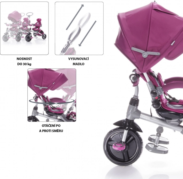 - Možnost odklopa pedalov, ko starš potiska tricikel.