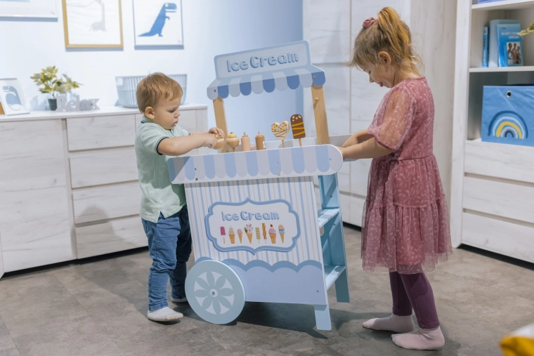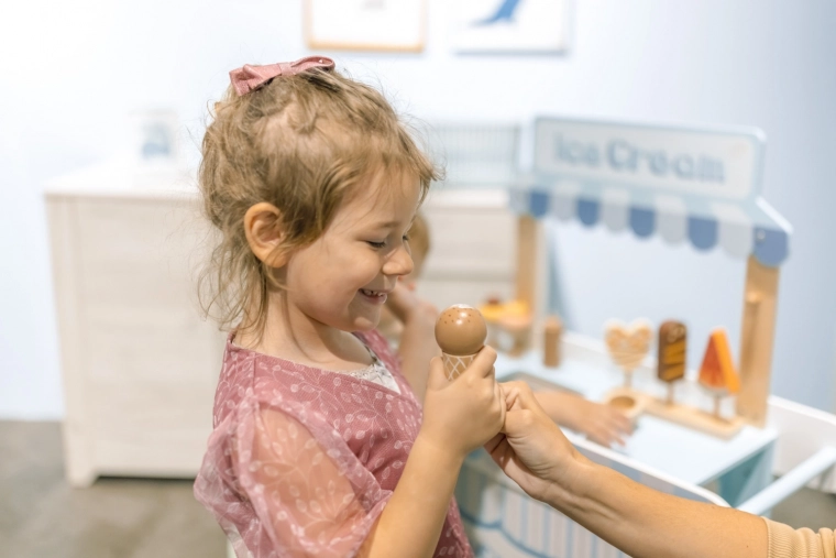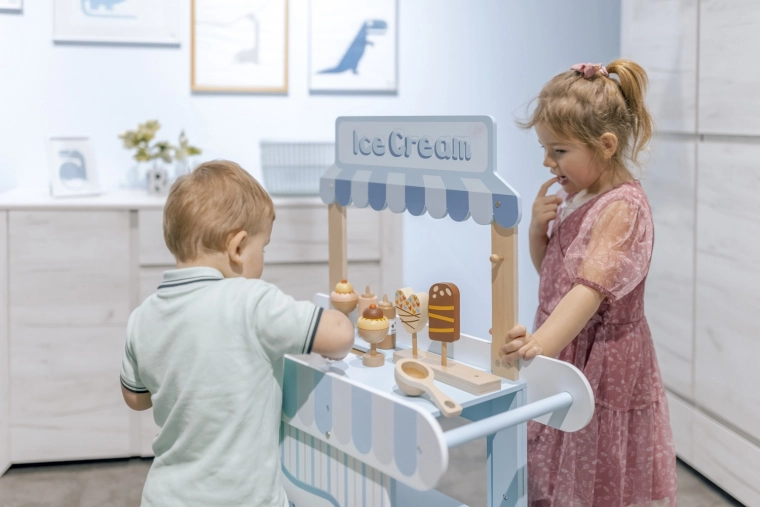 Otroci lahko pristno posnemajo delo sladoledarja z realističnimi rekviziti.