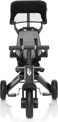 Ta tricikel raste z otrokom in se zlahka prilagodi različnim fazam učenja vožnje. Zahvaljujoč možnosti deaktivacije krmila in nastavitvi višine vodilne palice ga starši udobno upravljajo kot voziček, medtem ko otroci uživajo več zabave in svobode. Oblazinjen sedežni vložek in naslonjalo sta odstranljiva in enostavna za čiščenje.