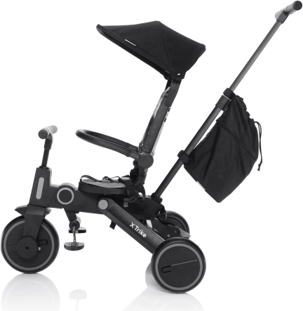 Multifunkcionalni otroški tricikel 7 v 1 X Trike je pametna alternativa vozičku in odličen korak proti poganjalcu ter kolesu. Ponuja upravljanje z vodilno palico, odstranljive pedale, oblazinjeno sedišče in kompaktno zlaganje za enostavno prenašanje. Za varnost skrbijo 5-točkovni pasovi, nastavljiva varnostna prečka, zavora in sončna strešica.