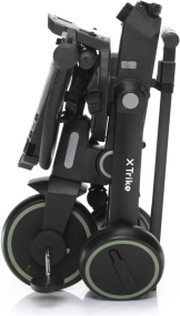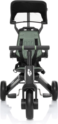 Tricikel je zložljiv in kompakten, zato se prilega v prtljažnik avtomobila ali manjši hodnik. Praktična odstranljiva torba in prenosni vrečast etui olajšata potovanja. Za varnost skrbijo 5-točkovni pasovi, nastavljivo varovalo in zavora na zadnjih kolesih.