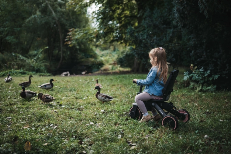 Modularna zasnova omogoča postopno odstranjevanje delov. Otrok tako pridobiva samozavest in samostojnost v varnem tempu.