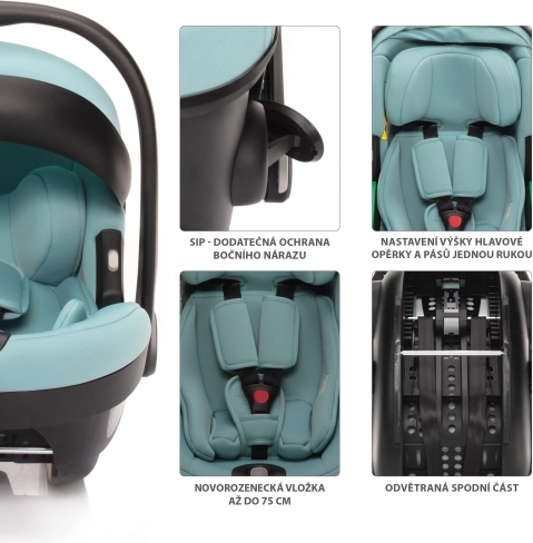 Avtosedež XM je opremljen z dodatno zaščito SIP v primeru bočnega trka. Namestitev avtosedeža v vozilo z uporabo ISOFIX na osnovi ali z varnostnimi pasovi vozila. Ročaji na straneh avtosedeža olajšajo oprijem in rokovanje pri odstranitvi s konstrukcije vozička. Avtosedež je združljiv z adapterji Maxi Cosi.