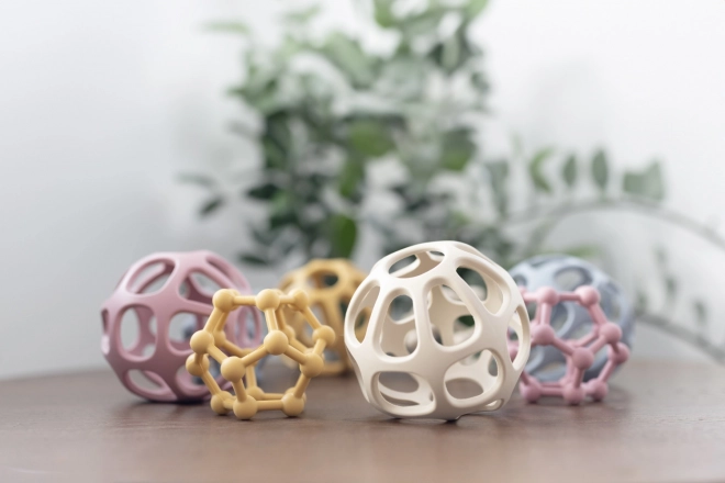 Grizalo je izdelano iz varnega silikona za stik z živili, ki je nestrupen in odporen proti razbitju. Za majhne otroke je silikon bolj naraven kot plastika ali kovina. Dizajn v obliki odprte žogice odlično sede tudi v najmanjšo pest in otrok ga zlahka prime iz katerega koli kota. Zahvaljujoč svoji obliki grizalo spodbuja motoriko rok, predvsem koordinacijo oko–roka.