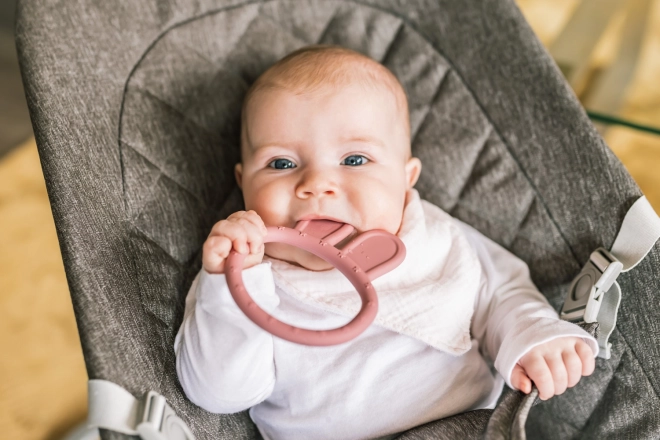 Grizalo je izdelano iz varnega silikona za stik z živili, ki je nestrupen in odporen proti razbitju. Za majhne otroke je silikon naravnejši kot plastika ali kovina. Zajčja oblika se odlično prilega tudi najmanjši pestici. Zelo prijetno za grizenje in stimulacijo obremenjenih in občutljivih dlesni pri izraščanju zobkov. Tekstura v obliki zvezdic dodatno izboljša stimulacijo dlesni.