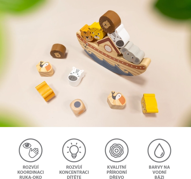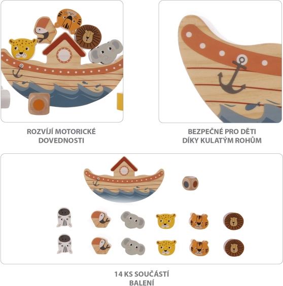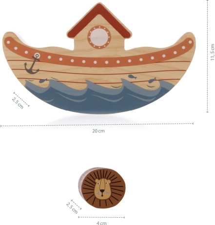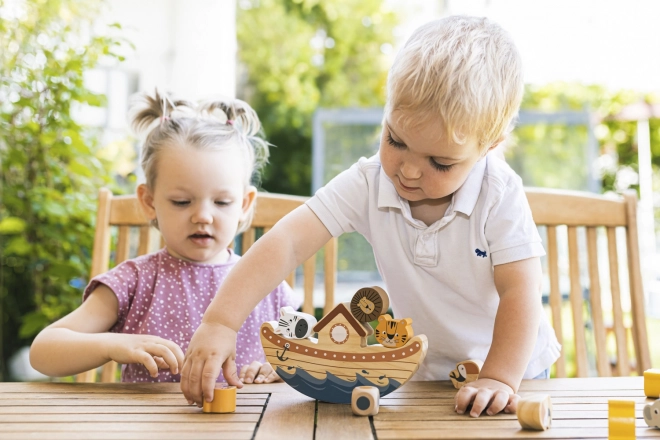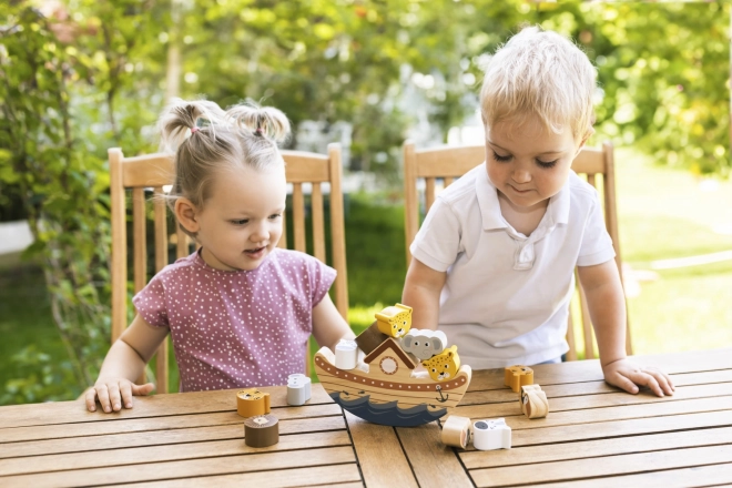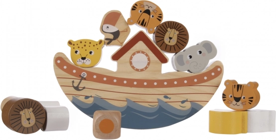 Igrajte sami ali v večji družbi – otroci, odrasli, babice, dedki – ta zabavna igra bo navdušila vse! Postopoma naložite vse lesene živalice na krov, a pozor! Čim več je živalic na krovu, tem večja je verjetnost, da se arka prevrne ali da živalice padejo z ladje!
