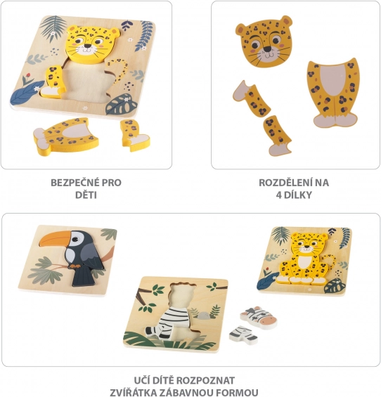 Zahvaljujoč trpežnim lesenim koščkom so te sestavljanke izdelane tako, da prenesejo neskončne ure zabave, z uporabo nestrupenih barv pa so popolnoma varne za otroke. Sestavljanke pomagajo razvijati fino motoriko in koordinacijo oko–roka, vse to skozi zabavno in izobraževalno igro.